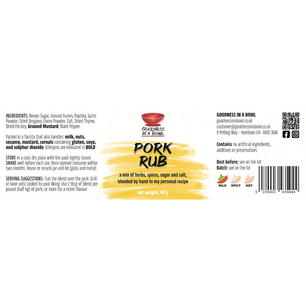 The Flavour Profile: Our Pork Rub is a masterclass in balance. It combines the deep warmth of smoked paprika with earthy undertones and a hint of sweetness to caramelise perfectly under heat. Designed and rigorously tested in our kitchen, it guarantees a punchy, savory umami finish that enhances the natural sweetness of pork without overpowering it.