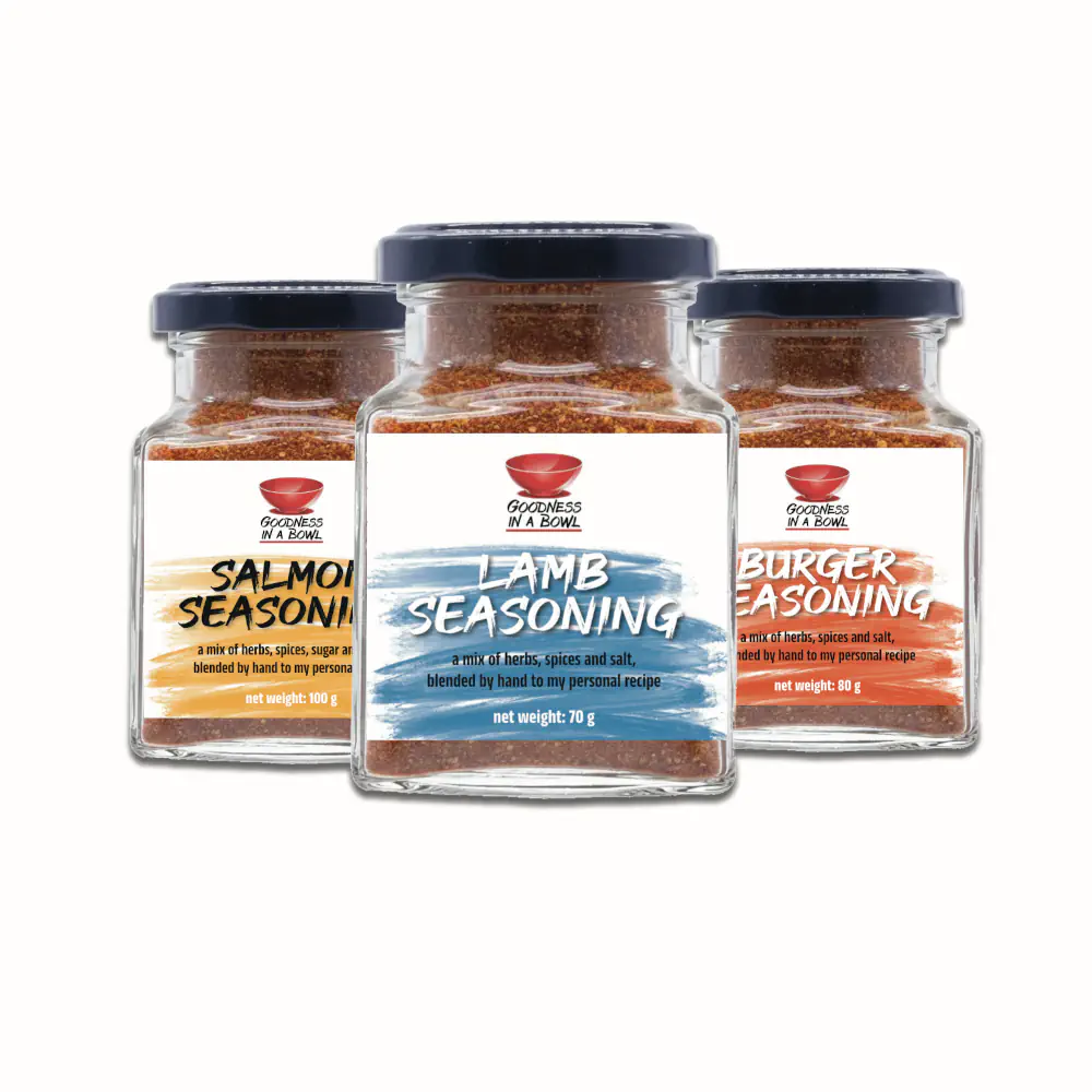 This trio brings together robust herbs and deep smoky notes, specially crafted to enhance the natural richness of lamb, burgers, and salmon.